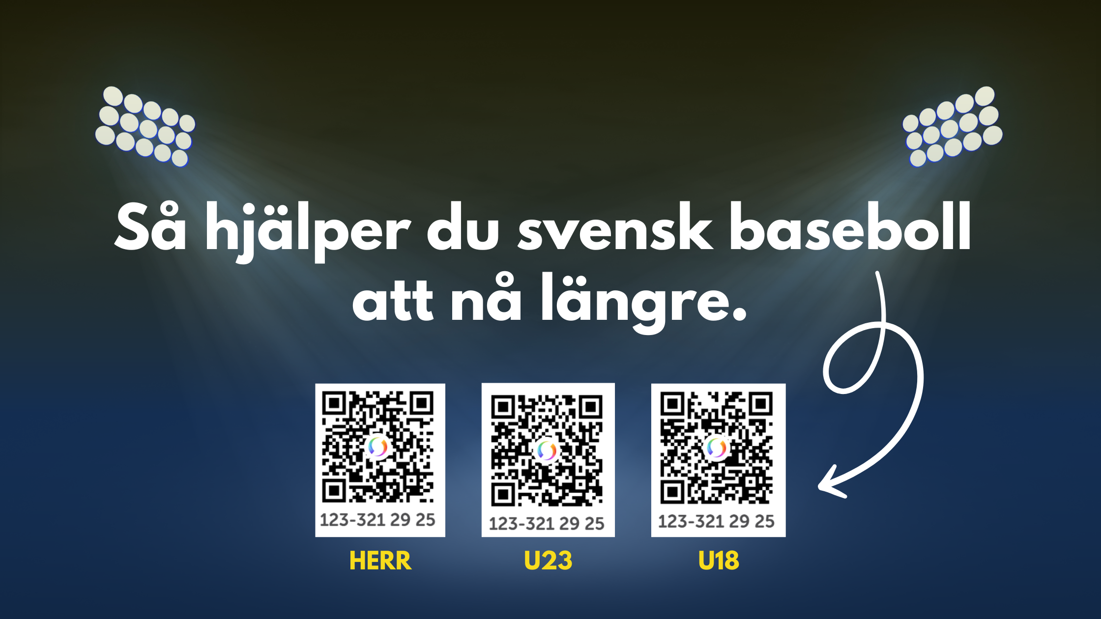 Genom att ge en gåva ser du till att våra spelare kan tävla utan ekonomiska hinder. Du blir en del av resan mot EM och hjälper till att bygga framtidens svenska baseboll.